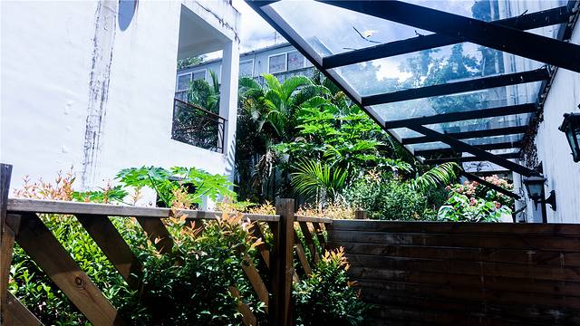 我的这个房间是在一楼,有一个露天的阳台,一人高的木制围栏种植着绿色植物,给予了足够的私密性,在清晨坐在阳台上的沙发上,来一杯咖啡或者清茶,这种感觉一定非常棒!