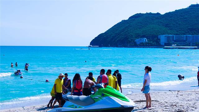网上购票的游客要到排队大厅外的机器上换取纸质门票,在检票以后有序地登上前往蜈支洲岛的客渡,行驶时间大约20分钟,在蜈支洲岛上,有很多水上项目可以玩,如海底漫步、潜水、摩托艇、香蕉船等。