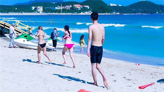 从民宿出来只用走5分钟,就能看见一望无际的大海了,这里的海水虽然不是最清的,但却是三亚最热闹的景区了。尤其是到了傍晚,走在大东海的夜市,我惊讶地发现这里外国人竟然比中国人要多,特别是俄罗斯人,仿佛你来的不是三亚,而是莫斯科。