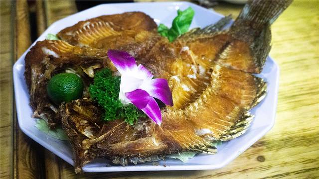 还有这道黎家冲浪鱼,整只鱼都被炸得酥脆,连骨头也可以嚼着吃了,不过我觉得这道菜也可以配点蘸料,因为我还在杭州吃到过醋鱼,酸甜可口,所以如果可以搭配上一些甜辣酱或者别的酱料的话是不是会有更多的滋味呢?