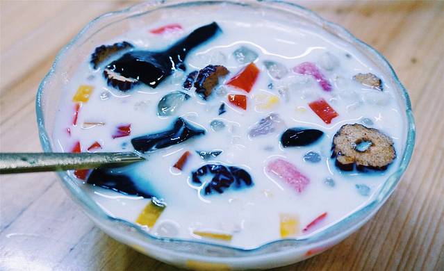 吃饱喝足再来碗清补凉,不得不说这家的清补凉是十分的地道啊!清补凉是一种极富海南特色的夏日饮品,甜品的原料有椰子、绿豆、通心粉、凉粉块、薏米、西米露等等,一般会根据店主的喜好来添加原料,自然而然每个店的味道也就不一样了。