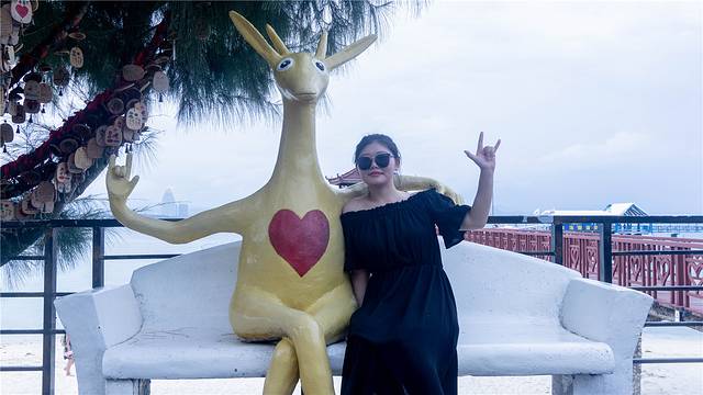 而这里最著名的就是鹿回头雕塑了,讲述的是一位黎族青年猎鹿追赶到南海之滨时,鹿回头变成了一位黎族少女,两人相爱并繁衍为黎家山寨的故事,后人们便称山寨为“鹿回头”。这里的爱情故事也让很多的情侣争相前往来“牵你的手去鹿回头”。
