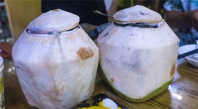 白天玩累了可以找一家果汁店坐坐,点一个现开的椰子,轻轻倚靠在栏杆上,看着前方海中嬉戏的人们,感受拂面的海风,内心是无比享受这一宁静时光的。