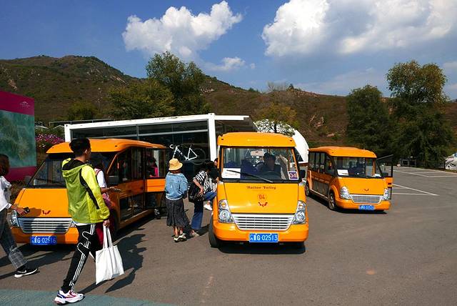 景区游玩,可以乘坐黄色摆渡车,招手即停,间隔时间短,方便又快捷。