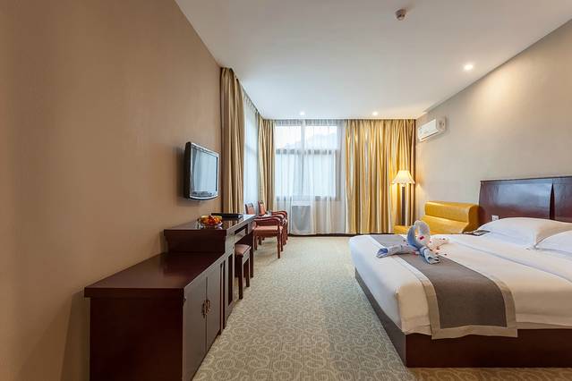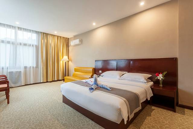 明黄色的沙发带点复古又烘托着敞亮的窗景