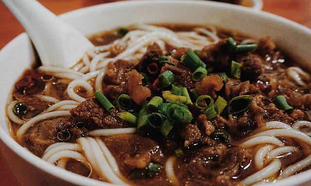 牛肉几乎没抓粉,呈颗粒状,口感有嚼劲,部分肉粒带筋