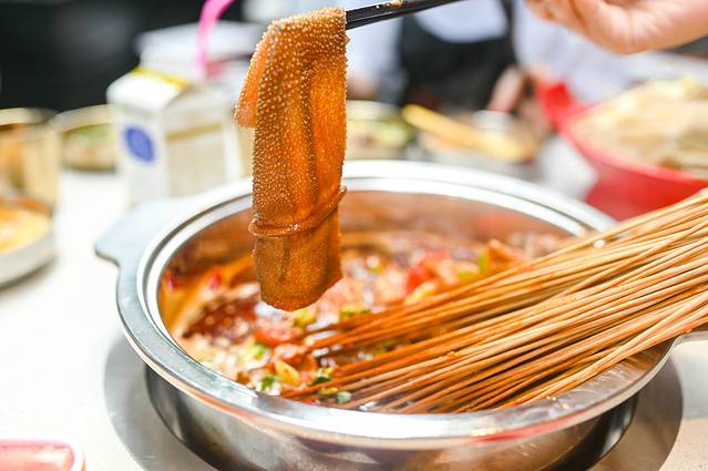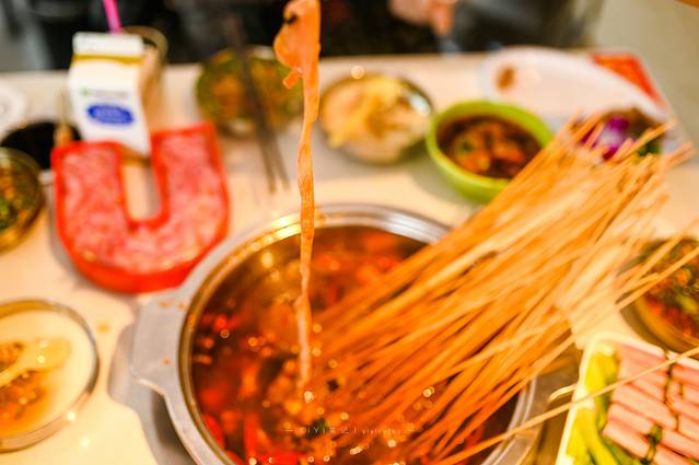 各种各样的串串全都放进锅里,尤其是牛肉弹嫩的口感,没有人可以抵挡住这份诱惑。