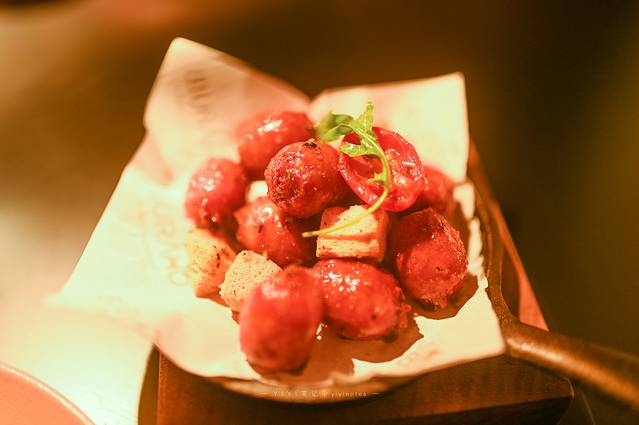 小颗的烤西班牙脆皮肠,红彤彤的看着非常有食欲,尤其是那四溢的香气,更让人着迷。一口压下去炸裂的感觉,香脆的外皮和多汁的肉馅一同混合在口腔里,一下幸福感爆棚。