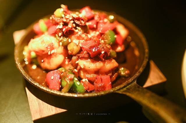 这道中西合璧的创意菜品蒜香油爆虾,绝对是必选菜品。去壳后的虾肉在热油的刺激下,蒜香味儿已经百分百的渗入肉里了,香气扑鼻特别鲜美,微辣的口感是我们四川人的最爱。