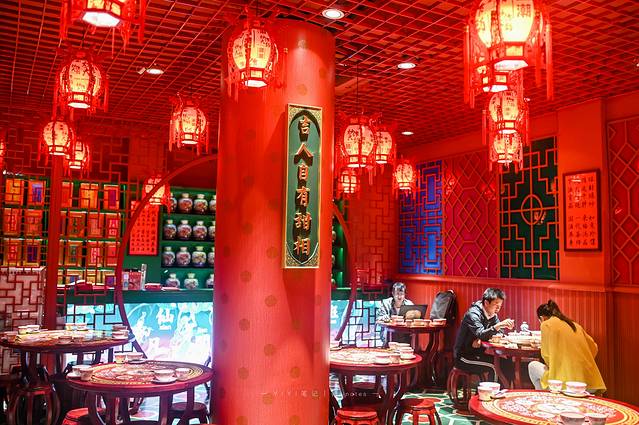 走进大厅红与绿的搭配,反倒更显时尚大气。酒楼中国风的喜庆装潢,无所不在的散发了国潮文化。
