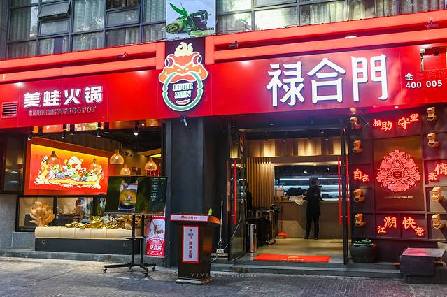 店内的环境也装修也很喜庆,下午不到六点,店里就坐满了人,每进来一位客人,服务员都会一起喊“来到禄合门,就是一家人”。