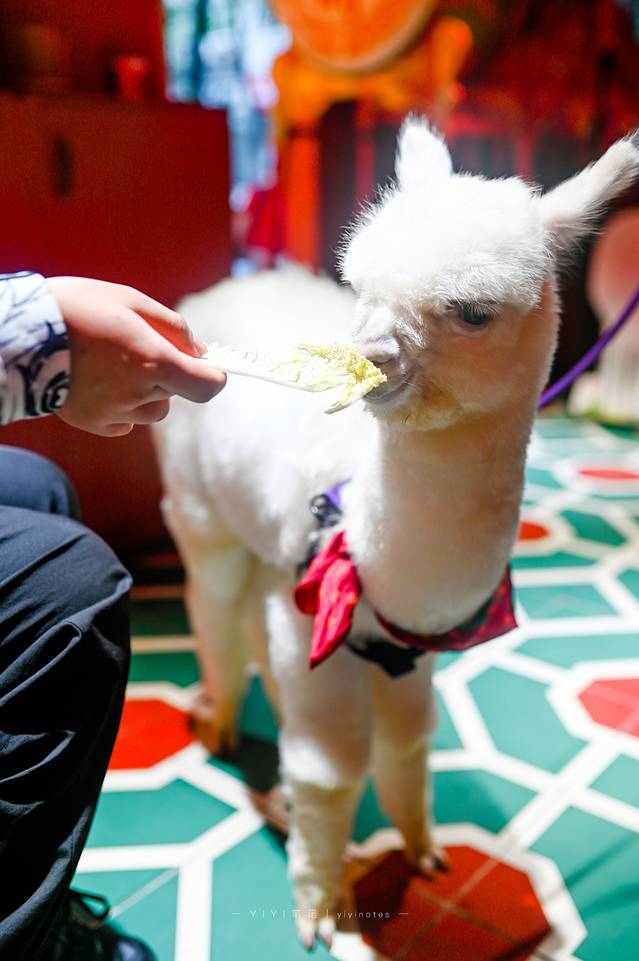 你一定想象不到去酒楼吃饭,还能和可爱的小羊驼亲密接触。小羊驼满身蓬松柔软的绒毛,眼眸清澈透亮,性格安静又温顺。刚进入店内时刚好看到有人喂它食物,超级温顺,专心吃菜时,呆萌的样子真的太惹人喜爱啦。