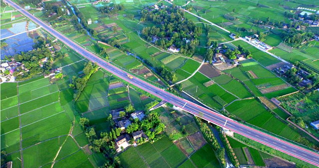 从濛阳镇上二绕高速就直接到了郫都区唐昌镇战旗村
