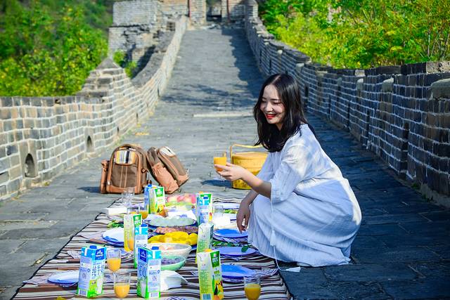 瑜伽过后,丰盛的早餐已经备好,这是我们自己带上来的呦。有水果、面包、果汁、玉米等等,非常的丰盛。在长城上吃早餐有谁体验过?又可以在朋友圈晒幸福了。