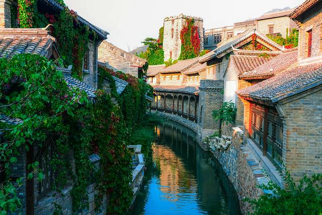 走进 古北水镇 ,古色古香的建筑林立,水韵悠悠,午后明媚的阳光透过葱郁的树冠照在身上,有丝丝暖意,与水镇的静怡古韵不谋而合,人与景一同沉浸在水镇温柔的慢时光里。