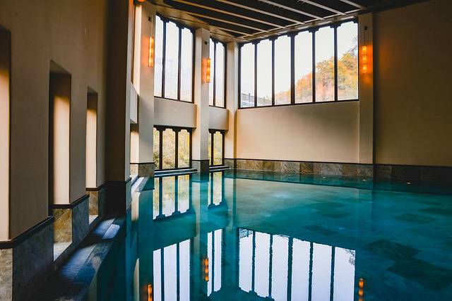 沐浴着从高处屋顶之间洒下来的光,走进恒温泳池,在面向景观的平台上休息,逐渐对这个酒店开始迷恋。