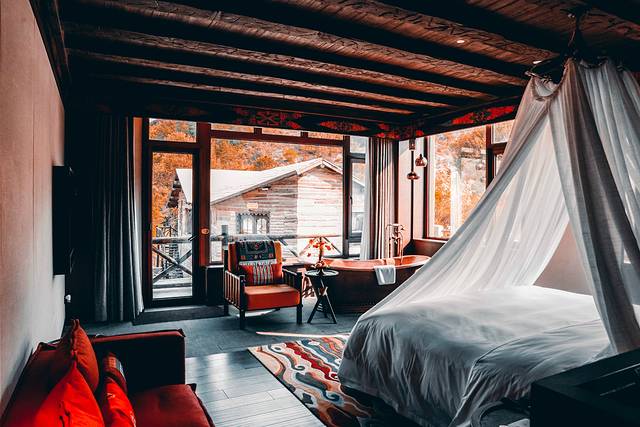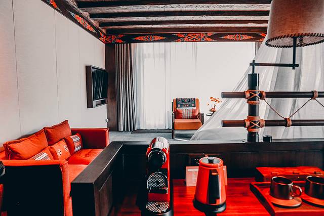 在 古北水镇 幽深宁静的兰谷中,深入腹地,背靠司马台长城,面朝燕山支脉,坐拥极美山野景致,藏着一个藏式与现代相结合的火塘精品酒店。