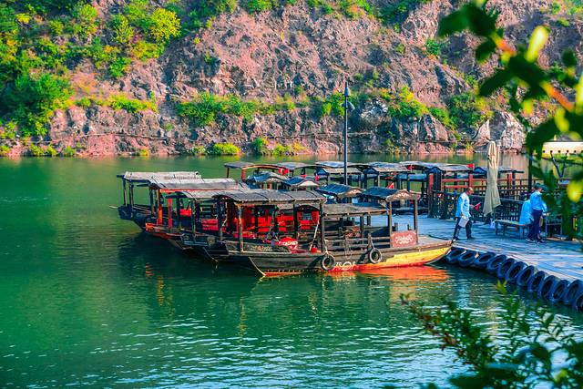 汤河上不时有摇橹船划过,有些人在船上谈天说地,也许是在分享旅行的趣事;有的沉默不语放松身心,沉浸在古镇的静怡时光。眼前浮现的是古镇美如画的水乡风情,耳畔传来的是桨板撩拨水面的清凉声,格外的有情调。