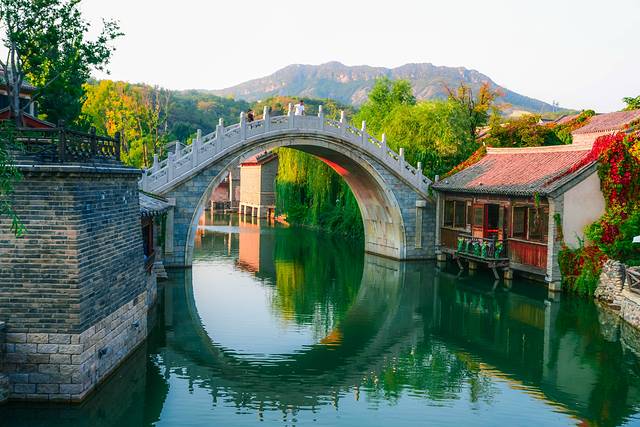 古北水镇 少不了桥这个主题,整个小镇由小汤河串联起来,街道与街道之间,景点与景点之间由许许多多的石桥相连,银笺桥、半晴桥、红妆桥等等,名字温文尔雅且桥的造型也不尽相同。