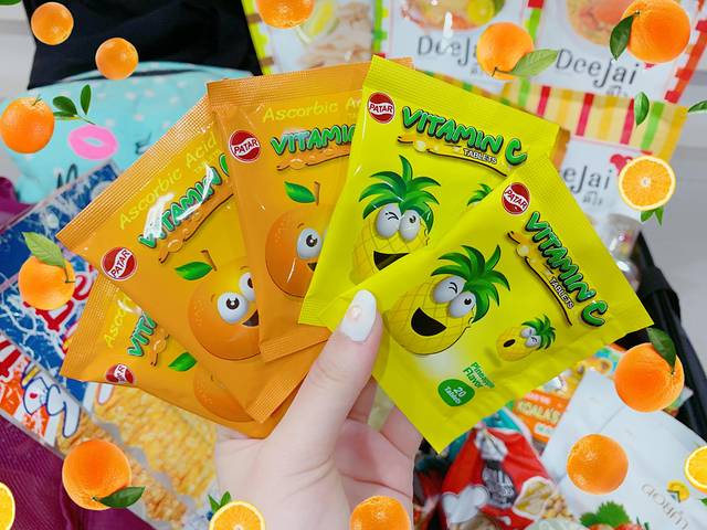 每盒10铢,可以在Boots买到。两个味道,橙子和菠萝味,每盒20粒,因为是小盒子,适合当口袋装,平时带出去很方便。