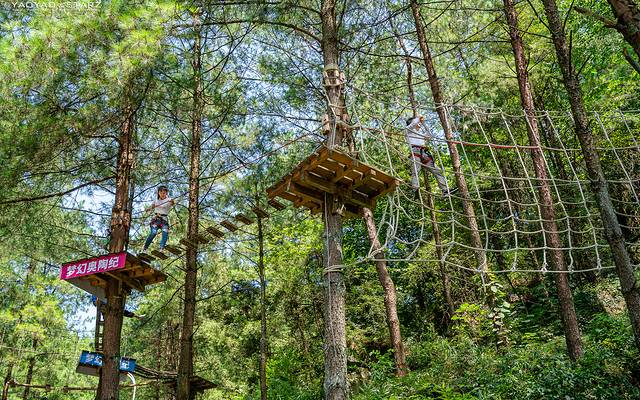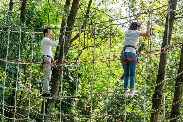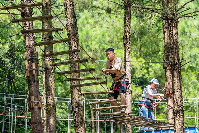 来到丛林飞跃,如其名字一样,真的是在丛林中像《猿人泰山》那样在树上穿越,是不是觉得挺过瘾呢?虽然丛林飞跃惊吓程度极小,但绝对没有你想象中那么轻松穿越的!在丛林飞跃区域都充满了各种各样的机关等着你去克服,还看到不少妹纸都玩哭了,不是有多难,而是真的难!不仅需要充沛的体力,还得有十足的自信心才能战胜!