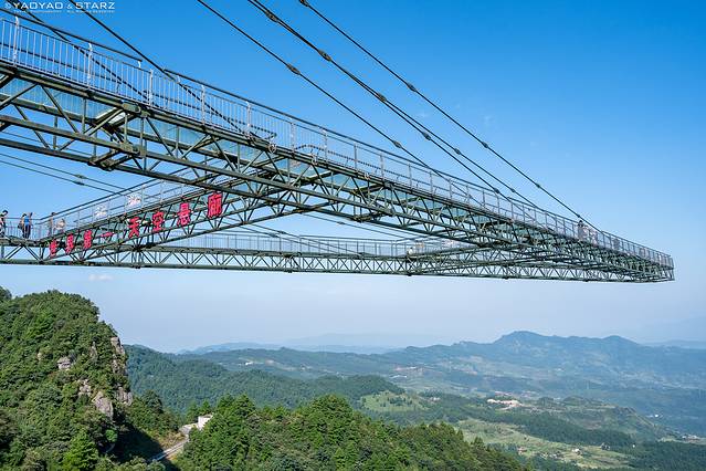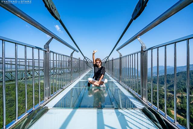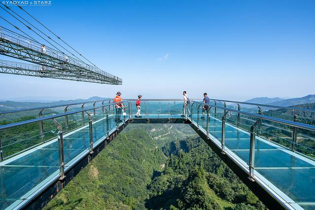 要想挑战天空悬廊是需要莫大的勇气!走在透明的悬廊上,两脚瑟瑟发抖,眼下便是万丈深渊,非常佩服能毫不畏惧站立在此的人,能够克服恐惧才能战胜一切困难,拿出我们的勇气,迈出我们的第一步,这是成功的开始!