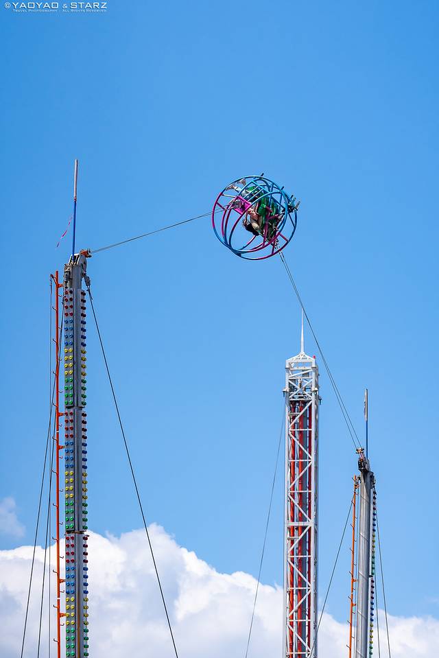奥陶纪的“火箭蹦极”也是非常受欢迎的一个项目。一飞冲天,冲上云霄就是这么简单。当你坐上去的那一刻,就在你毫不准备的情况下,忽然啾的一下,你已被抛上天空,在你还没从惊吓中缓过神之际,又被高速坠下,像极了小时候玩得弹弹球!