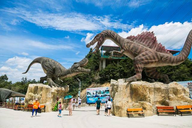 如果你看到了恐龙在山林中探出脑袋四处摆动,嘴巴一张一合,不要害怕! 那你就是来到了恐龙冰雪世界啦,恐龙冰雪世界外围布置了很多奇幻有趣的恐龙生存场景,稍不留神就会信以为真,犹如置身侏罗纪世界。