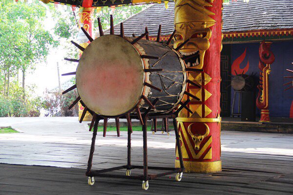 基诺族很信奉牛头,其实很多少数民族都把牛当做自己民族的图腾,佤族也是这样,大概这和牛在民族生活劳动中有着不可替代的作用有关系吧。在远古的农耕时代,牛是家里的重要劳动力,也是最值钱的财产。