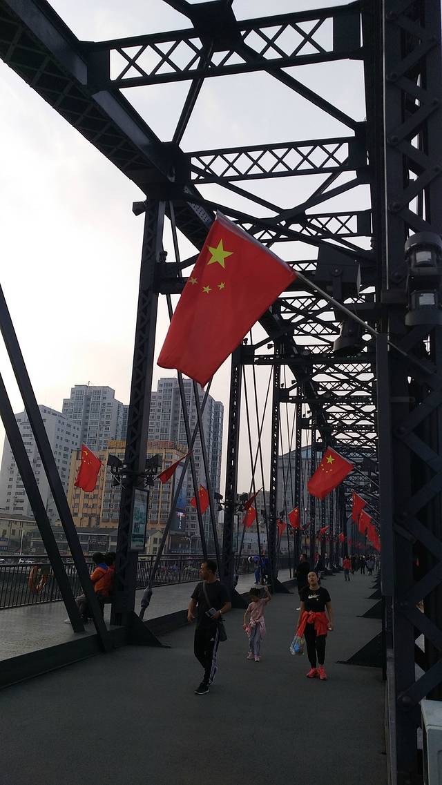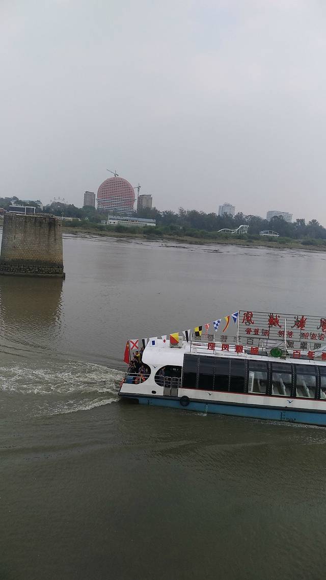 2019.9.29从大连出发,同行十余人,租了一个考斯特。大约中午左右抵达丹东,挑选了江边有特色的朝鲜族餐厅。之后开始了鸭绿江之行。国庆节前夕,人不算多。没有租衣服拍照,没有买特色小吃,在高昂的“我和我的祖国”歌声中一行人乘坐游船,在鸭绿江上感慨祖国的成长和壮大。