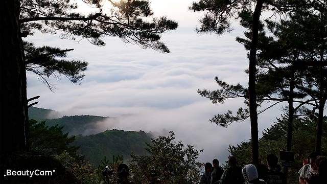 爬山一个小时,等着日出,然后一路下山都在云海种行走一般。
