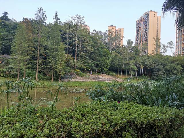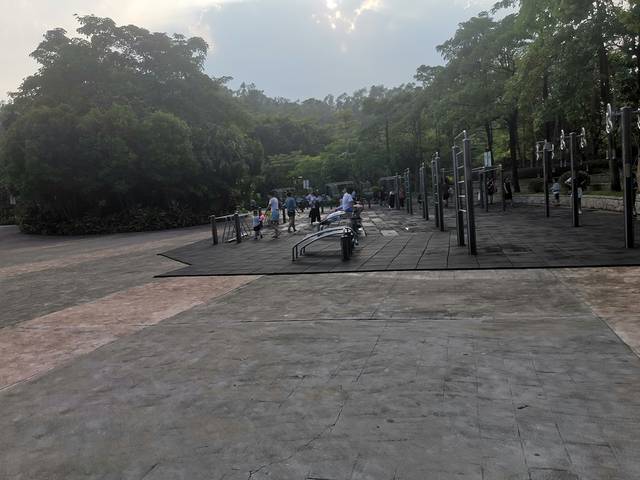 龙岗中心城比较不错的公园,正门在清林中路、和兴花园的对面,好多免费的停车位,很方便停车。一进园处便是健身路径,超多的健身器材,一到傍晚好多人来这里休闲。继续向里走,可以沿着石阶爬山,山还是非常大的,登到高处可以眺望整个龙岗中心城,风景很是不错。