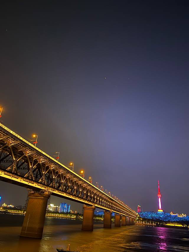 武汉长江大桥的夜景吸引了众多人驻足欣赏