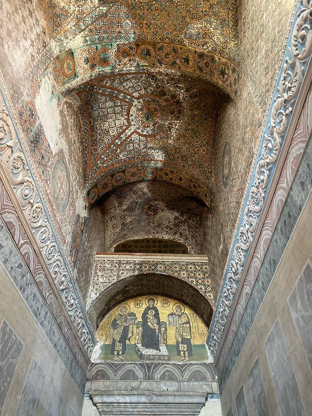 圣索非亚大教堂内部的装饰,除了各种雕刻之外,也包括运用有色大理石镶成的马赛克拼图。