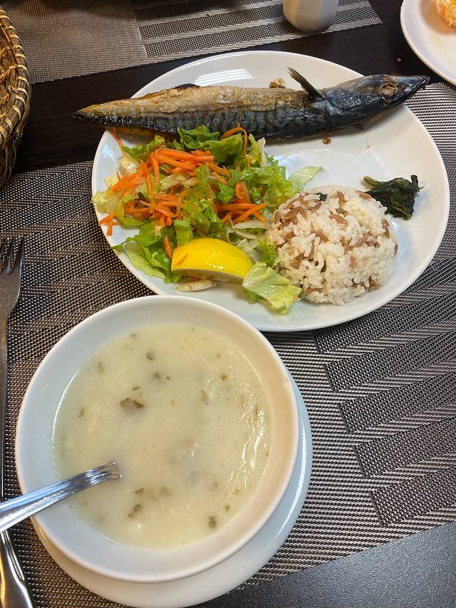 星月国的餐食特色,汤加上摆盘里的牛肉菜和主食,不太能吃得惯的味道