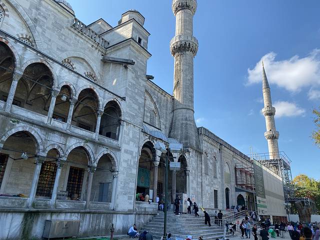 蓝色清真寺是是回教世界最优秀的建筑师锡南(Sinan)的得意弟子Mehmet Aga的作品,也是伊斯坦堡最具代表性的大清真寺,其正式名称为苏丹艾哈迈德清真寺。