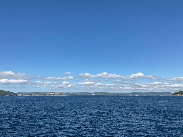 人和车一起上船后,游客可以到轮渡的二层和三层欣赏海景,乘坐时间大概为25分钟