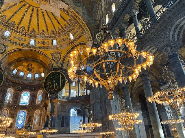 圣索菲亚大教堂有近一千五百年的历史,因巨大的圆顶而闻名于世,是一幢拜占庭式建筑。