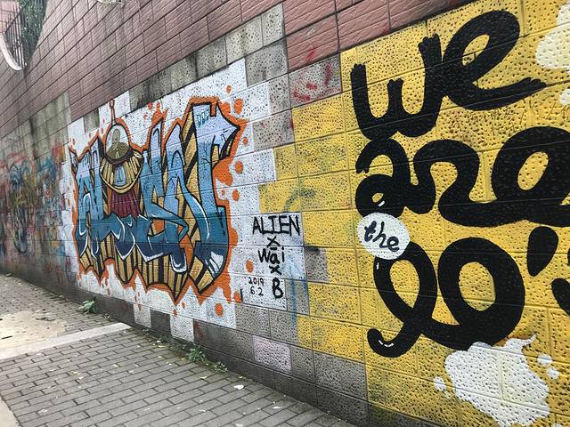 这边是老校区,在校门两侧就能看到整个楼上的各种涂鸦。