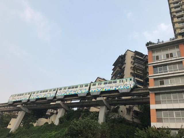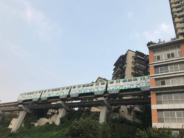 坐轻轨去李子坝,完全是抖音炒红的一个景点,就是轻轨从楼房里穿房子过去,可以做到李子坝下来后走到路对面的观景台上,可以看到全貌。
