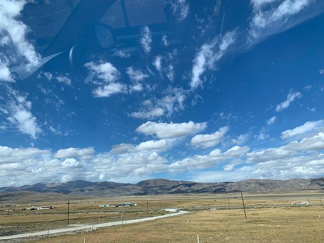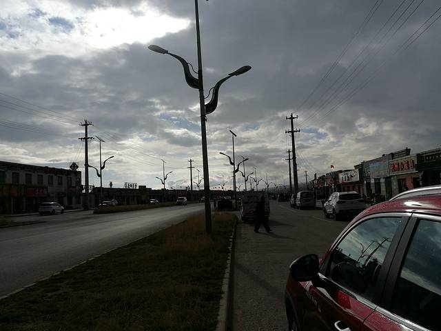 茶卡镇海拔三千多一点,虽然很累,休息得并不好,六点多醒来,老公下去侦查了,回来说楼下饭店已经开始供应早餐,想着一天的路程并不轻松,立即起身下楼吃饭。一碗羊肉拉面、一碗小米粥、油条一根、小笼包一笼。出门时遇到一个本地人推小车买黑枸杞、红花什么的,黑枸杞80元一斤,不知道为什么,收拾物品退房后忘记买了。