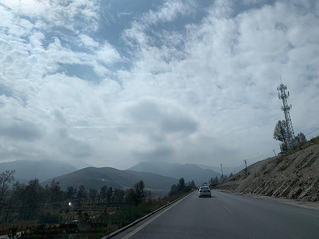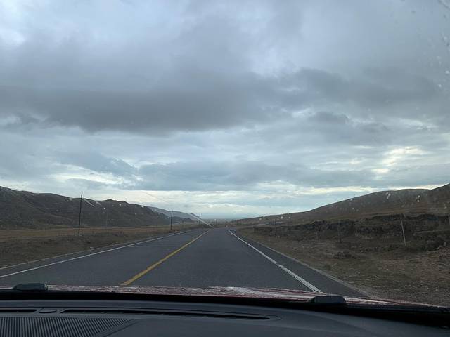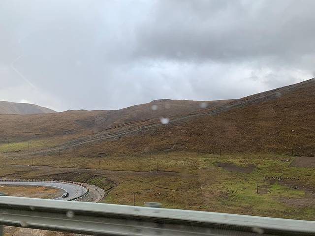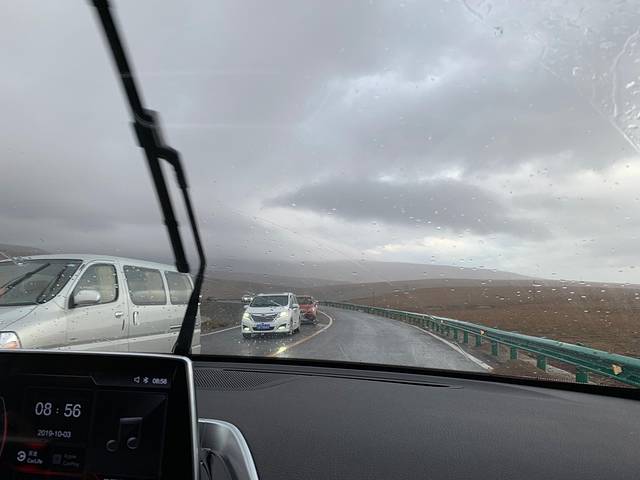 离开茶卡镇前给车加满油,减少后顾之忧。车开不久,雨淅淅沥沥的下起来了,眼看对面车道的车一辆挨着一辆的疾驰而过,应该是从黑马河乡过来的,开进山中,山路路况还好,雨越下越大,看见路旁有一片带卫生间的停车场,急忙停下来想休息一下,避避雨。没有人管理收费的旱厕看了一眼退了出来,哎......