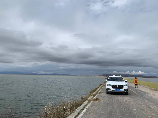 沿着环湖西路前行,路旁时不时地有牧民招手示意,应该是到他的领地欣赏青海湖美景的意思,我们随意选了一家,一辆车收费二十元,就直接沿着坑洼不平的小路开到了湖边。