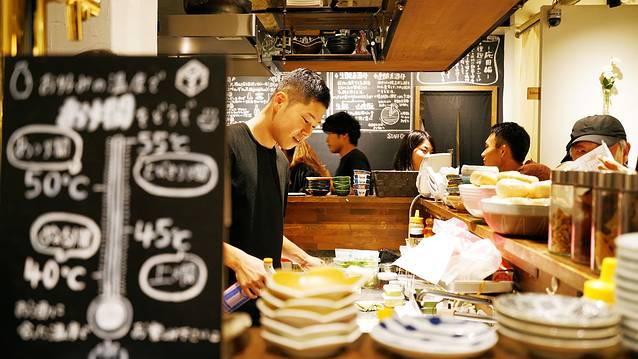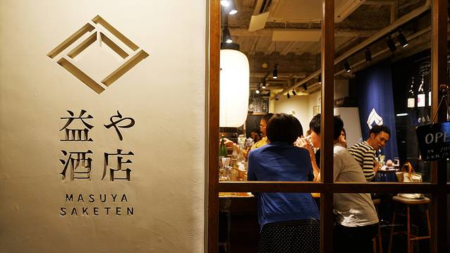 益や酒店,名为酒店,其实是一个有点偏现代风格的居酒屋。来这里,真的是为了喝酒,进门的一整面日本各地名酒墙,让你会有点眼花缭乱,口水横流的感觉。喜欢喝日本酒的朋友,这家店不容错过。