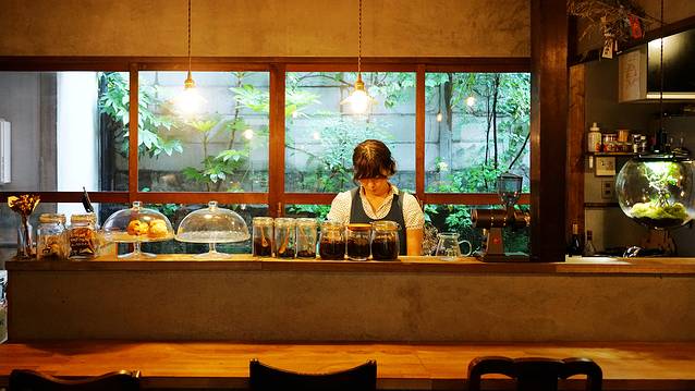 蒼々しい(咖啡馆),就在出町柳站,咖啡馆门面很小,是一个以植物为主题的咖啡馆,咖啡很好喝。如果你走累了,那不妨来这个咖啡馆小坐片刻。