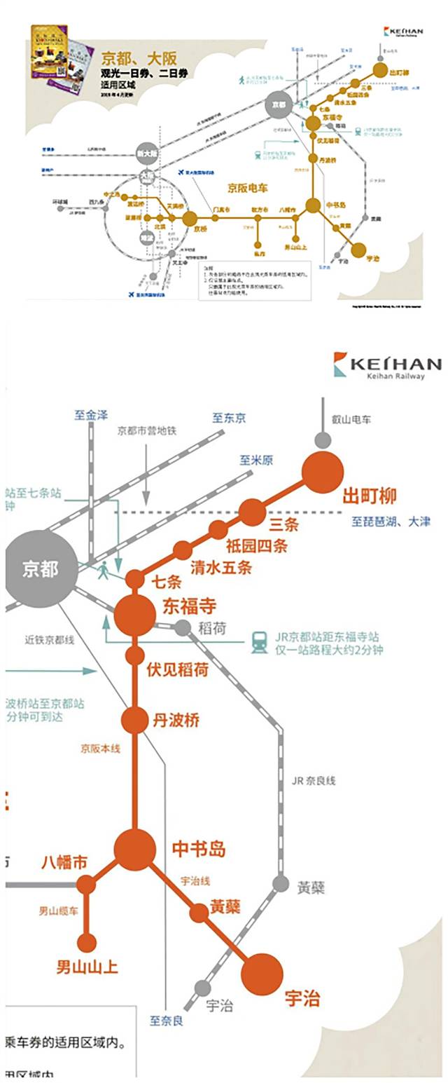 比如,你不使用观光券,从大阪的淀屋桥到京都的七条站,乘坐京阪电车所花费的费用为410日元。你用观光券乘坐三次京阪电车,就已经值回了票价!是不是很划算?