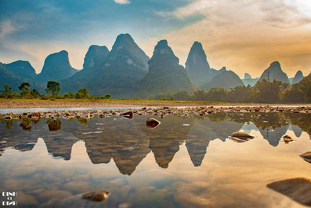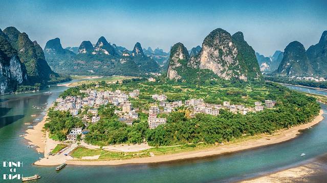 day1: 南宁 - 阳朔 站-过渡镰刀弯村-入住山水谣酒店- 漓江 畔-环岛路- 漓江 倒影-航拍镰刀弯-酒店星空