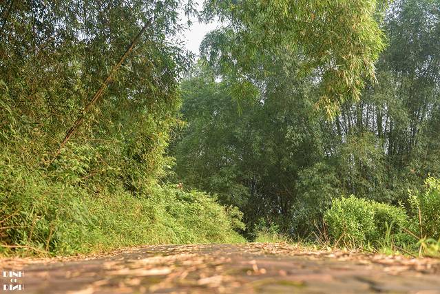 趁着太阳还未完全落下,沿着酒店边上的环岛路,绕过元 宝山 后山,去镰刀弯另一头的 漓江 倒影处欣赏 漓江 边上的落日余晖。环岛路上的风景非常秀丽,灌木丛生,郁郁葱葱,竹林与树木掩映在小径两边,远点望去能看见小山相互依偎着,仿佛多年好友难舍难分。