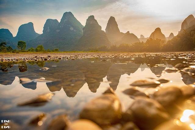 人说 桂林 山水甲天下, 阳朔 山水甲 桂林 ,而我还想在后面再补上一句,兴坪山水甲 阳朔 。说到 桂林 ,大家第一个目的地总是 阳朔 ,那里有西街,有十里画廊,有遇龙河,有······可说到真要住进这山水间体会这片宁静,还是要到兴坪去。但是有谁真正的住进了这片山水中吗?早晨被鸟儿叫醒,夜晚伴着虫吟入睡,夜游 漓江 ,一束光引来一群鱼虾,这里的大至苍穹,山水,小至花草树木,飞禽走兽都是极其可爱的,让人心不自觉地与自然亲近,不知不觉地放松平静下来。