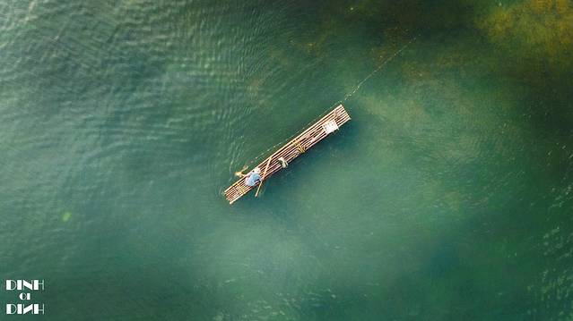 日头升起来后,游客才渐渐散去,这时候才敢掏出无人机来一个更高一点的上帝视角。这个时候,晨间的 漓江 游船已经出发,右下角在晨光中划出一道道金色的凤凰。远处的群山在光影中时隐时现,美不胜收。